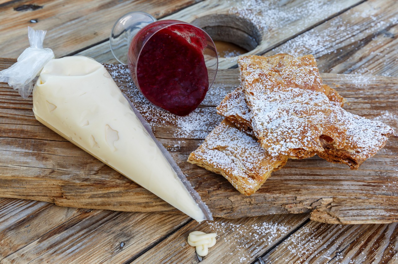 Millefeuille with Chios mastic and jam of red fruits (compose it yourself).